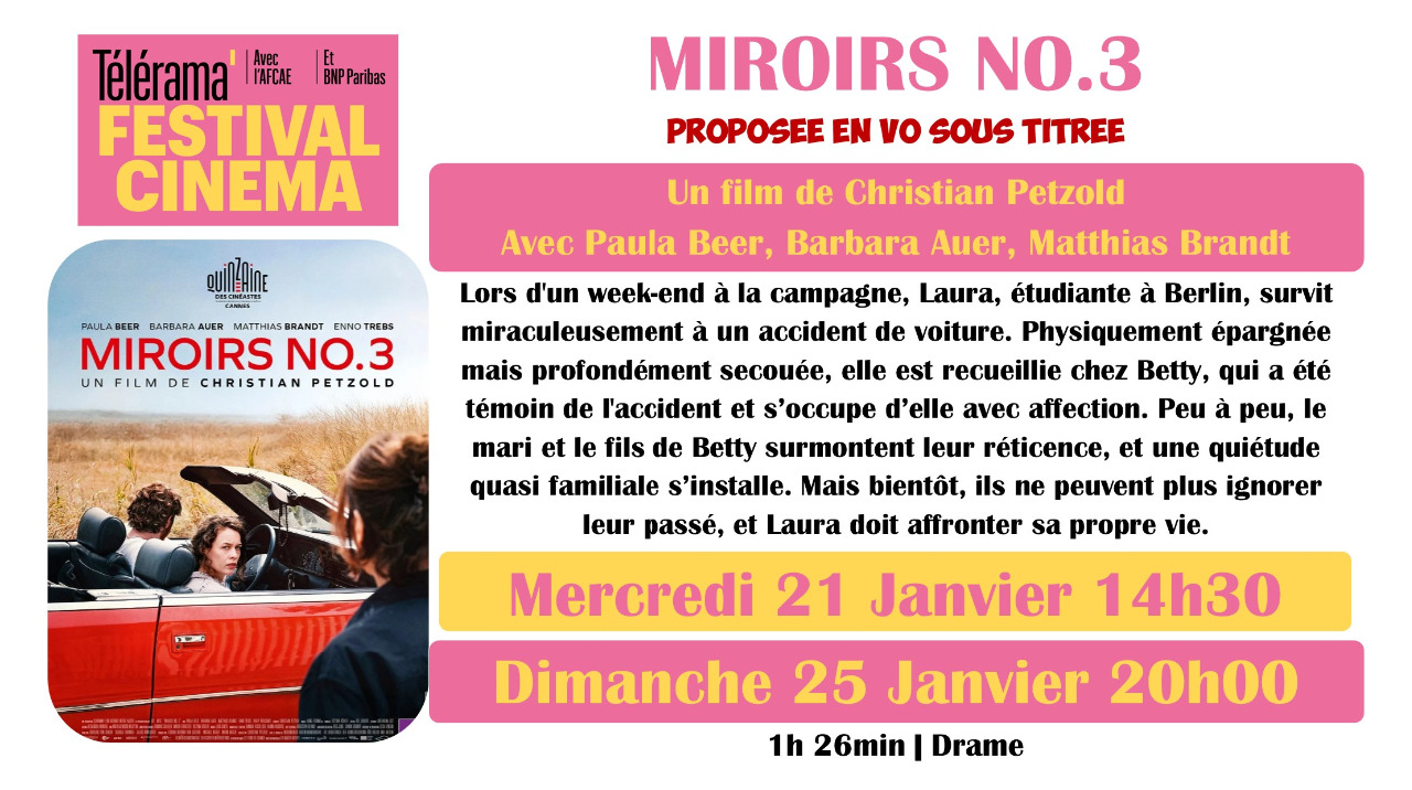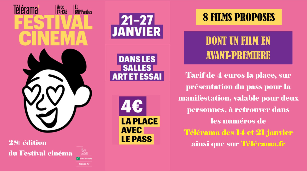 Depuis 28 ans, l'AFCAE et Télérama organisent au mois de janvier le Festival Cinéma Télérama/AFCAE, en proposant dans les salles Art et Essai une sélection des 15 "meilleurs films de l'année", choisis par la rédaction du magazine, ainsi que le film Coup de Cœur des moins de 26 ans, au tarif de 4€ sur présentation du pass dédié à la manifestation.